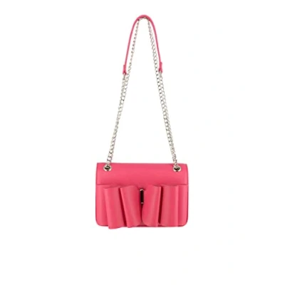 Faux leather evening bag In wavy look Silver hardware Flap with magnetic closure Link chain with shoulder part