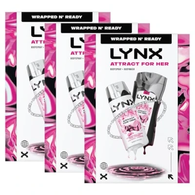 Lynx Attract for Her Gift Set, 3 Pack 50ml Body Spray & 225ml Wash, Fresh Fragrance Duo, Feminine Scent, Great Gifting or Everyday Use