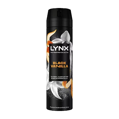 Lynx Fine Fragrance Collection Black Vanilla Premium Body Spray Men's Deodorant infused with vanilla, orange & sandalwood essential oils for 72 hours of freshness 200 ml