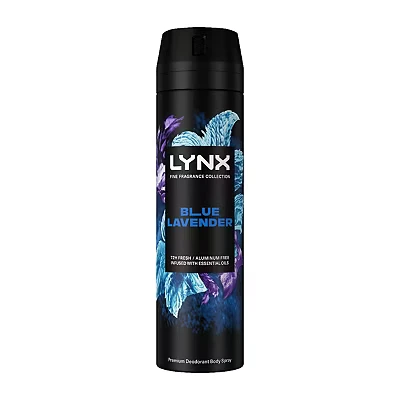 Lynx Fine Fragrance Collection Blue Lavender Premium Body Spray Men's Deodorant infused with a lavender, mint & amber scent for 72 hours of freshness 200 ml