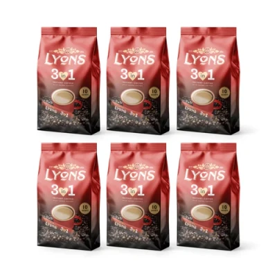Enjoy a good ol' cup of joe with these handy Lyons Coffee 3 in 1 x 10 sachets 18g. In an instant, you can enjoy the rich and deep flavours of quality coffee without the hassle of brewing your own, or visiting your local barista. Inside these delicious Lyons sachets, there is sugar, coffee and milk - so everything you need for a sublime coffee break is ready to go.. Discover our full range of instant coffee here.. Each bag has x 10 sachets of 18g. Each sachet includes the perfect amount of sugar, coffee, and powdered milk creamer. Ideal for throwing into your bag for your work coffee break. Made with love from Lyon