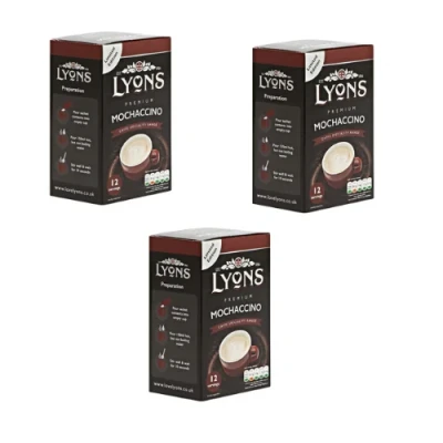 Treat yourself to a cup of luxurious Lyons Premium Mochaccino Instant Coffee. This instant Italian style mocha offers a divine cocoa flavour for a chocolate-y twist that you will love. The creamy froth will delight your taste buds, so you can have a truly indulgent coffee break.. 1 x Lyons Premium Mochaccino Instant Coffee x 12 Sachets. Irresistible chocolate twist. Perfect for throwing into your work bag