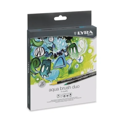 LYRA Aqua Brush Duo, Fine Art Marker Set, Dual Tip, 24 Assorted Colours, Water Soluble Pens, Ideal for Professionals & Students