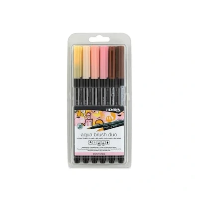 LYRA Aqua Brush Duo, Fine Art Marker Set, Dual Tip, 6 Assorted Skin Tone Colours, Water Soluble Pens, Ideal for Professionals & Students
