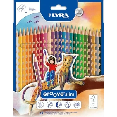 LYRA Groove Slim Wooden Colouring Pencils, 24 Pieces in Assorted Colours with Sharpener, Ideal for Children and Schools