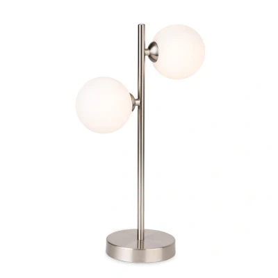 Net LightingAttractive modern table lamp in a fine quality brushed steel finish. It is complemented by opal white glass shades. Ideal for use in living rooms, kitchens, bedrooms and study areas.