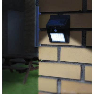 A compact, solar powered LED security light that is simple to install and requires no wiring or mains power.The intelligent motion sensor triggers a super bright LED light in the hours of darkness when motion is detected, providing a reliable and energy efficient solution for outdoor lighting illumination and security lighting.This easy to install security light uses 2 fixing screws and wall plugs (supplied) and has 3 operational modes:Mode 1: Operates at 100% brightness when triggered by movementMode 2: Operates at 50% brightness until triggered by movementMode 3: Constant light in the hours of darknessPlease note: Solar LED lighting is dependent on the amount of sunlight they get each day. The run time will be reduced during non-summer months as charge times are reduced by hours of daylight and light strength.