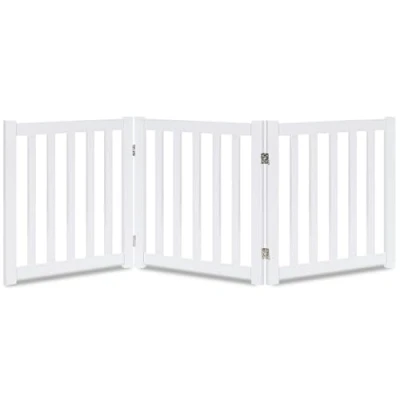 LZRS Oak Wood Foldable Pet Gate,Wooden Dog Gate,Cat Gate,Pet Gate with Collar for House Doorway Stairs,Freestanding Indoor Outdoor Safety Fence,3 Panel 24" White