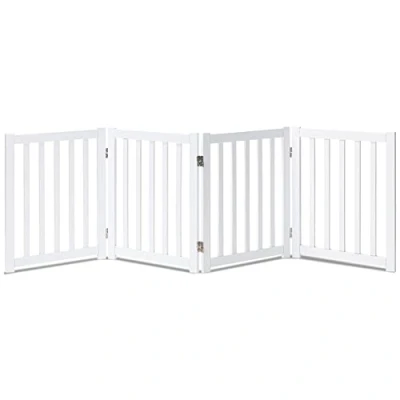 LZRS Oak Wood Foldable Pet Gate,Wooden Dog Gate,Cat Gate,Pet Gate with Collar for House Doorway Stairs,Freestanding Safety Fence (4 Panel 24, White)