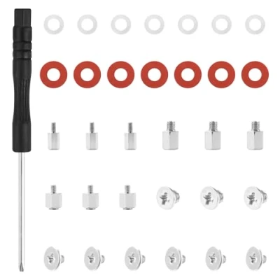🔩 【Complete 32-Piece Kit & Non-Magnetic Tool】: Get EVERYTHING you need for secure M.2 SSD installation in one go! This comprehensive set includes M2/M3 screws, brass standoffs (multiple heights), red & white insulating washers, AND a crucial non-magnetic Phillips screwdriver. Never worry about scratching your motherboard or damaging components with a magnetic tool again! ⚡ 【Essential Insulation & Clear Identification】: Safeguard your valuable motherboard against accidental short circuits! The kit provides white insulating washers (M2x5)(7pcs) and red insulating washers (M3x7)(7pcs). The distinct colors offer quick visual identification during installation, ensuring you use the correct size and type for optimal protection and easier assembly. 🛡️ 【Universal Compatibility & Versatile Standoffs】: Designed to fit the vast majority of motherboards and M.2 SSDs (NVMe & SATA). Features multiple brass standoff heights (M2x3+4.5mm(3pcs), M2x6+4mm(3pcs), M3x6+3mm(3pcs)) and various screw lengths (M2x2.5(6pcs), M3x3(3pcs)). This versatility ensures a perfect, secure, and gap-free fit for different motherboard standoff hole depths and SSD thicknesses. ✨【Durable & Corrosion-Resistant Construction】: All screws and standoffs are made from high-quality carbon steel with a nickel plating finish. This provides excellent strength, durability, and resistance to rust/corrosion, ensuring long-lasting performance and reliable hold for your SSD. ⏱️ 【Organized & Cost-Effective Solution】: Stop searching for tiny, easily lost screws or making multiple purchases! This neatly packaged 32-piece kit offers a convenient, organized, and cost-effective solution for DIY PC builders and upgraders. Achieve a professional-looking, secure M.2 SSD installation with no missing hardware!