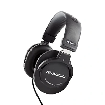 M Audio HDH40 Over Ear studio Headphones with closed back design, flexible headband and 2.7m cable for monitoring, podcasting recording