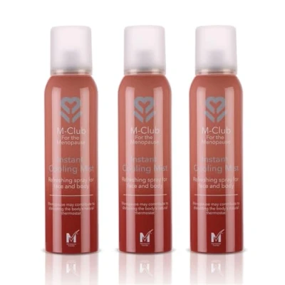 M Club Instant Cooling Spray for Face & Body 3x 150ml Relief Menopause Hot Flushes, Overheating Night Sweats Non Sticky Moisturising Mist, Hydrates Relieves Alcohol Free Formula