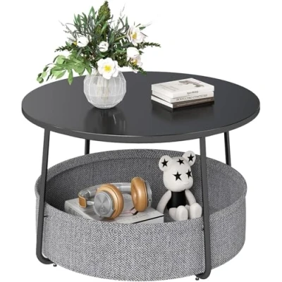 [Ample Dual-Tier Storage Solution]This round coffee table with storage features a spacious built-in polyester fabric basket, measuring 71cm x 15cm, beneath a sturdy tabletop. It's perfectly designed to organise living room clutter, effortlessly stashing away magazines, remote controls, throws, and toys to keep your space tidy and minimalist. [Robust 40kg Weight Capacity & Stability]Engineered for durability, the table boasts a strong steel frame and a particleboard top that supports up to 40kg. The U-shaped leg design and adjustable levelling feet ensure exceptional stability on uneven floors, preventing wobbles and protecting your flooring from scratches. [Space-Saving Modern Design]With its compact 75cm diameter and 45cm height, this round end table fits perfectly next to your sofa or armchair as a coffee table, or beside your bed as a nightstand. Its sleek, minimalist profile makes it an ideal choice for flats, dorm rooms, and smaller living spaces. [Quick & Tool-Free Assembly]We value your time. This living room table is designed for hassle-free setup and can be assembled in minutes without any extra tools. Clear instructions are included, making it incredibly straightforward to get your new furniture ready for use. [Versatile for Any Home Décor]Available in classic White or sleek Black, this versatile side table complements a wide range of interior styles. Whether your home is Scandinavian, contemporary, or industrial, this functional and stylish piece enhances your living room, bedroom, or nursery effortlessly.