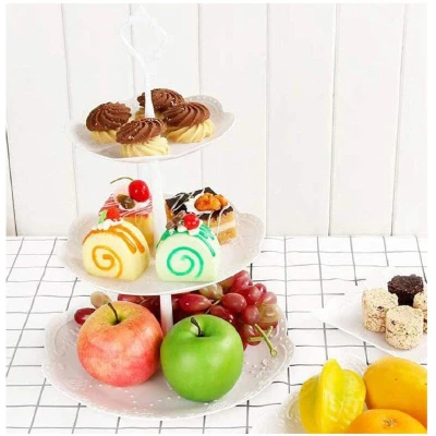 ManoManoGeneral description The Dhouse 3 Tier Cake Display Stand is an ideal choice for showcasing a variety of treats at any event. With its three-tier design, it offers ample space for displaying desserts, cupcakes, cookies, chocolates, fruits, candies, and snacks, making it perfect for birthdays, weddings, and parties. Technical specifications Product Name: 3 Tier Cake Stand Color: White Shape: Round/Square Number of tiers: 3 Material: Environmentally friendly PP plastic Usage This cake stand is versatile and suitable for various occasions. It is easy to store and clean, making it a convenient addition to your party supplies. Other information Products include: 1 * Cake Stand Display