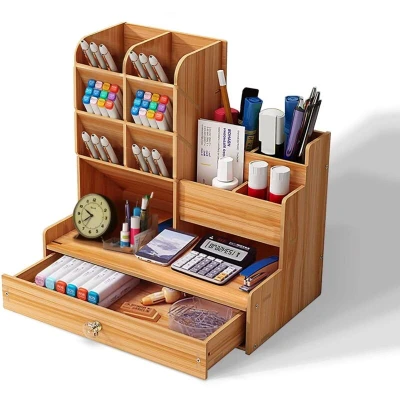 General description Holdfiturn Wooden Desktop Organizer is a high-quality, creatively designed storage solution perfect for keeping your workspace tidy. With its large capacity, it is suitable for organizing a variety of items including pens, pencils, rulers, scissors, cosmetics, and other small essentials. This versatile organizer is ideal for home, office, and school use, making it a practical addition to any desk. Technical specifications Material: Wood Colors available: Gloss Black, Cherry, White Maple Size: 25.4 x 24.5 x 15 cm Type: Pen Holder Brand: Unbranded/Generic Installation Assembly required upon receiving the product. Usage Ideal for organizing stationery, cosmetics, and other small items. Helps keep your desk clutter-free. Can be used as a gift for children or friends.