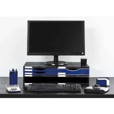 M Office Atenea Ergonomic Monitor Stand 100% Recycled and Recyclable Product Includes One Large Drawer, Two Small Wide Tray for Sorting
