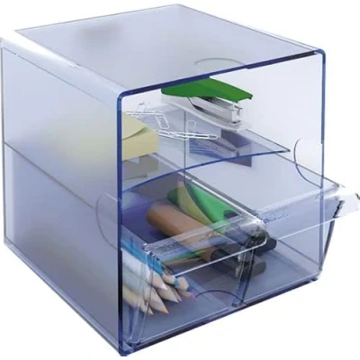 m office Kali Modular Stackable Organizer Made in Transparent Polystyrene with 2 Small Drawers and 1 Compartment (Transparent Blue)