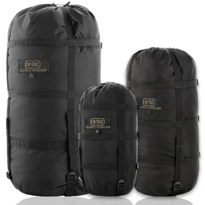 M Tac Sleeping Bag Compression Stuff Sack Military Water Resistant Lightweight Nylon for Travel, Camping, Hiking, Outdoor (Black, XL 40 liters)