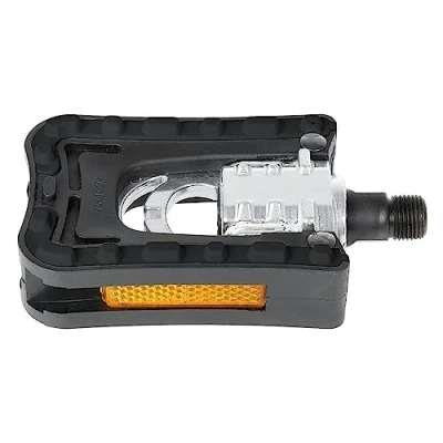 Aluminium / plastic body with CrMo axle Lightweight and safe folding, reversible With non-slip rubber pad With German test mark and reflectors Tread surface: 69 x 98 mm (L x W)