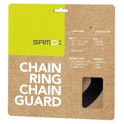 Material: aluminium Colour: black anodised Bolt circle: 104 mm Suitable for 46 teeth