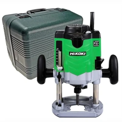 General description The powerful M12VE router from HiKOKI is essential for any kitchen fitter or carpenter. With a 1/2" collet capacity, it is compatible with a wide range of cutters and most jigs when used with the supplied template guide. This router is powerful enough to handle almost all types of wood and features three angle adjustable handles for comfort during extended use. Technical specifications Input Power: 110V, 1570W No Load Speed: 8000-22000/min Collet Size: 12.7mm (1/2") Plunge Depth: 65mm Overall Height: 360mm Weight: 6.3kg Compatibility and accessories Compatible with most jigs using the supplied template guide Includes: 1 x 1/2" Collet Chuck, 1 x 1/4" Collet Chuck, 1 x Straight Guide, 1 x 30mm Template Guide, 1 x Wrench, 1 x Carrying Case Installation Easy to set up with included accessories Usage Ideal for trade professionals and DIY enthusiasts Variable speed motor allows for precise control Adjustable handles enhance user comfort Other information