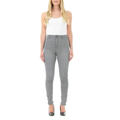 M17 Women Ladies High Waisted Denim Jeans Skinny Fit Casual Cotton Trousers Pants with Pockets (12, Mid Grey)