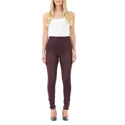 M17 Women Ladies High Waisted Denim Jeans Skinny Fit Casual Cotton Trousers Pants with Pockets (24, Berry)