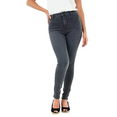 M17 Women Ladies High Waisted Denim Jeans Skinny Fit Casual Cotton Trousers Pants with Pockets (26, Grey)