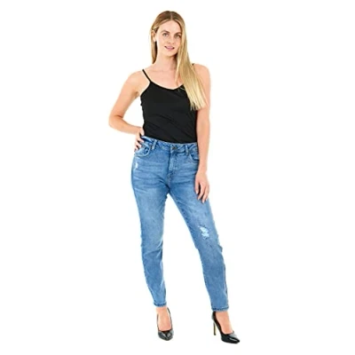 M17 Women’s Ladies Knee Ripped Denim Jeans Skinny Fit Classic Casual Cotton Stretchy Trousers Pants with Pockets (27W, Mid Blue Wash), 5056242842330