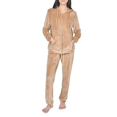 M17 Women's Sleepdown Ladies Velour Tracksuit 2 Piece Top and Joggers, Toffee Brown, XL