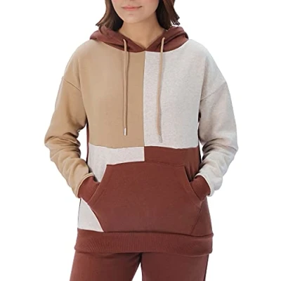 M17 Womens Ladies Plain Patchwork Hoodie Pullover Hoody Soft Casual Hooded Sweatshirt Top Long Sleeve Jacket Jumper (M, Toffee Brown)