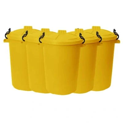 M1SS 50L Litre Heavy Duty Plastic Clip Lock Lid Bin Indoor or Outdoor Rubbish, Dustbin, Trash Can, Waste Storage of Animal Feed. (5, Yellow)