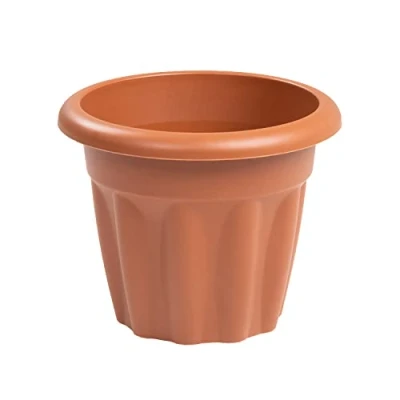 M1SS Round Plastic Flower Pot Garden Planter Plant Container Indoor Outdoor Decoration Traditional For Home Office Terracotta (25cm)