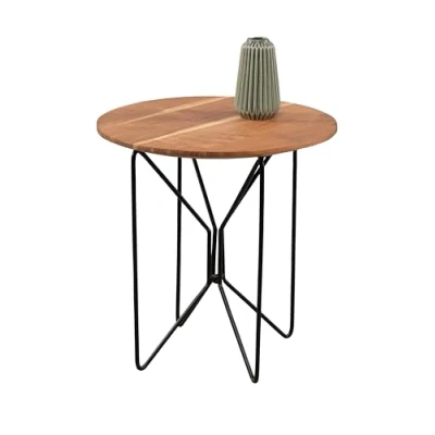 Design: The Faber 1 side table impresses with its modern elegance, accentuated by the combination of acacia wood and black metal. Material: High quality solid acacia wood for the tabletop ensures durability and a warm, natural look. Dimensions: with a height of 52 cm and a diameter of 50 cm, the table offers a wide range of uses. Features: the Swiss edge of the top plate gives the table a special, stylish accent and underlines the high quality workmanship.