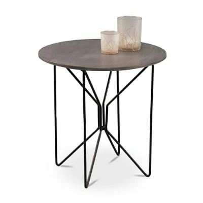Design: The Faber 1 side table impresses with its modern, industrial design, which can be easily integrated into different interior styles and visually enhances any room. Material: High quality mango wood for the deck plate in silver matt finish, combined with a sturdy black metal frame for durable and sturdy quality. Dimensions: With a height of 52 cm and a diameter of 50 cm, the Faber 1 is compact and versatile, ideal for small and large rooms. Features: The Swiss edge of the top plate gives the table a particularly elegant look and underlines the fine craftsmanship that is involved in its production.