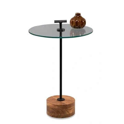 Whether as a central element in your living room or as a stylish addition to your decor, the table is more than just a piece of furniture. It is a statement about your sophisticated taste and attention to detail. The clear safety glass table top gives this side table a timeless elegance while providing a bright and airy atmosphere. The black metal table leg and the solid acacia base complement the design perfectly. The wooden base not only provides a stable base, but also gives the table a natural and warm touch. This successful combination of different materials makes the side table a unique piece of furniture