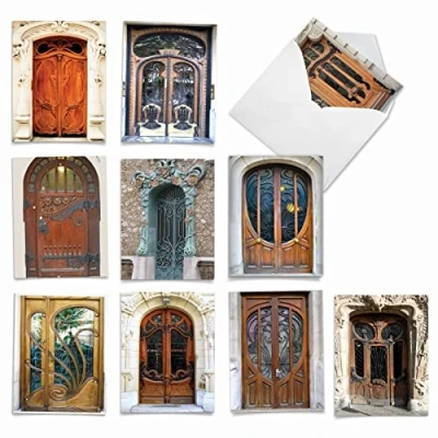 M4624OCB B1x10 Art Nouveau Doors: 10 Assorted Blank All Occasion Note Cards Featuring Images of Beautifully Ornate and Intricately Designed Doorways w/White Envelopes.