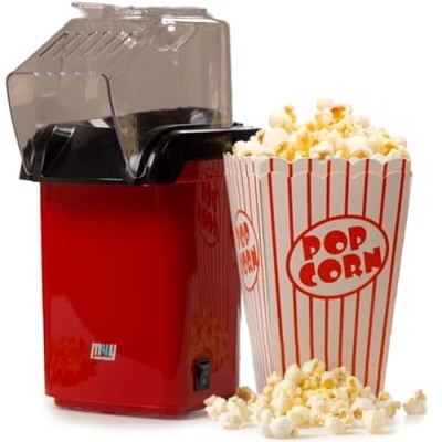 M4Y Popcorn Maker Machine, Electric Fat Free Healthy Air Popper, Machine with 8 American Cinema Style Boxes, 1200W