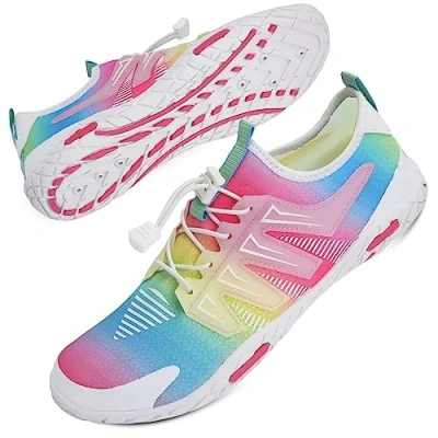 Mabove Water Shoes Womens Ladies Quick Dry Barefoot Sports Aqua for Swimming Pool Beach Boating Snorkeling Diving Lake Yoga(Rainbow 1004,5 UK,38 EU)