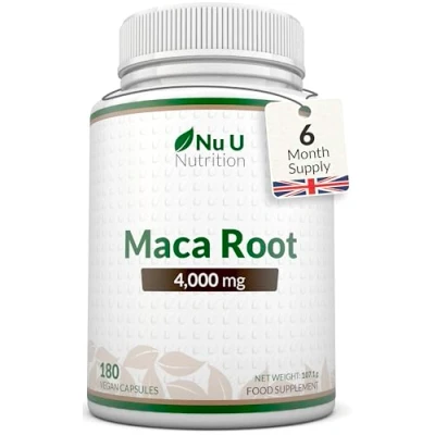 HIGH STRENGTH PERUVIAN MACA ROOT - Each one of our capsules contains 4000mg of highly concentrated Maca Root, stronger than other supplements of Maca Root available. We use only the finest Maca Root powder sourced from its native home of Peru. 6 MONTH SUPPLY - As well as offering the highest strength Maca supplement on Amazon, we also offer an INCREDIBLE 180 capsules per bottle. This is the equivalent of a 6 month supply based on a one a day serving. Our capsules are small and easier to swallow when compared to Maca root tablets. BEST FORMULA - Our Maca Root supplement provides the equivalent of 4000mg of dried Maca root extract per capsule based on a concentrated 10:1 and 100:1 ratio. Other products only use powder and not a concentrated extract, meaning that the effectiveness and potency of the product is much lower. With our unrivalled formulation you will get the full efficacy of the Peruvian Ginseng! QUALITY YOU CAN TRUST – Manufactured in the UK to GMP standards, each batch is carefully produced for purity and consistency. We use HPMC capsules – a plant-based cellulose suitable for vegetarians and vegans. This supplement does not contain magnesium stearate. THE NU U NUTRITION STORY - TRUSTED SUPPLIER OF NUTRITIONAL SUPPLEMENTS - Starting as a family business in 2014, we’ve expanded to offer a diverse range of high-quality supplements designed to support different lifestyles. Our mission is to make wellness simple, with premium ingredients that cater to your daily nutritional needs—whether for general health or targeted goals.