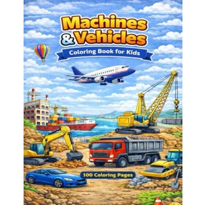 Machines and Vehicles Coloring Book for Kids: 100 Pages