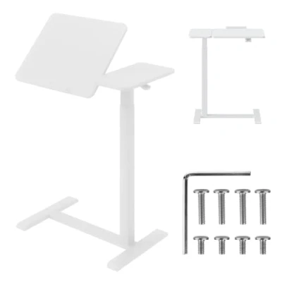 Maclean Laptop Desk Height Adjustable 755 1108 mm Tilt up to 60 Mobile with Wheels Load Capacity 30 kg Ergonomic & Stable for Home Office (White)