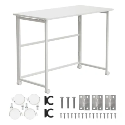 Multifunctional use: the folding mobile desk is ideal for home office, student apartments, small apartments or offices. As a computer desk, work table or side table, it offers versatile uses for work, learning and hobbies. Space-saving design: thanks to the folding function, the table can be reduced to only 8 cm depth and fits easily under beds, behind doors or next to cupboards. Perfect for small spaces, studios or home offices. Sturdy construction: robust steel frame and easy-care chipboard guarantee maximum stability and load capacity up to 50 kg. The table top 100 x 50 cm offers enough space for laptop, printer, books or office supplies. Movable on castors: Four lockable wheels allow easy movement of the table and ensure stable positioning at the desired location. Ergonomic and comfortable: with 75 cm height suitable for standard office chairs, the table ensures ergonomic work, comfortable learning or hobby work for longer periods of time. Easy to install: All necessary components are included, assembly is quick and easy. The desk is ready to use immediately after unpacking. Versatile and functional: ideal as a computer desk, side table or work area. Robust, mobile, space-saving and functional, the table fits into any interior and offers flexible use in different rooms.