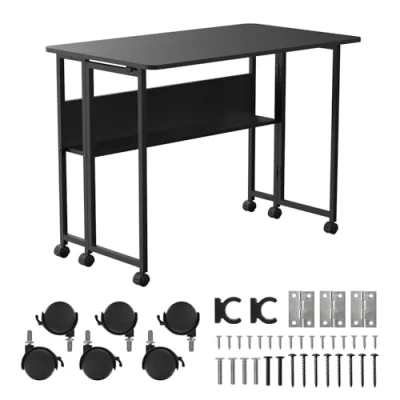【Exceptional space saving】 Table top of 100 x 58 cm, collapsible to 22.5 cm to adapt to small spaces 【Smart folding】 Transform your desk into a compact piece of furniture in seconds 【Improved Mobility】 Six locking castors for smooth and safe moving 【Robust structure】 Stable steel frame and chipboard top with a load capacity of 50 kg 【Optimised space】 Convenient bottom shelf for accessories and office supplies 【Fast assembly】 All accessories are included for easy installation without additional tools 【Versatile use】 Ideal for teleworking, studying, crafting, hobbies or as a side table