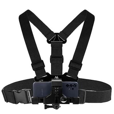 ▶ Chest harness for attaching a camera or phone ▶ Compatible with smartphones, GoPro cameras and more ▶ Shockproof ▶ Universal size ▶ Wide range of strap adjustments ▶ Adjustable angle ▶ Supports phones from 7.5 to 10 cm wide and 14 to 18 cm high ▶ Great comfort