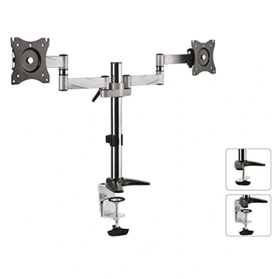 ▶ 2-Arm universal monitor holder ▶ Suitable for all monitors with VESA standard 75x75 or 100x100 ▶ Screen diagonal: from 13 "to 27" inches ▶ Full motion: tiltable by 35 ° as well as 360 ° swiveling and rotatable ▶ Height of the two support arms can be adjusted ▶ Ideal solution for more order and space on the desk ▶ Fixing via table clamp - Very simple installation without drilling ▶ Perfect solution for more space and order on the desk! ▶ Maximum load per holding arm is 8kg ▶ A perfect choice for home, office and work!