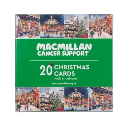 Macmillan Village Scenes Charity Christmas Cards Pack of 20 Luxury and Eco Friendly Cards. Boxed Multipack 4 Seasonal Designs. 127x127mm Card Size.