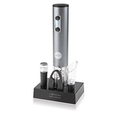 Smart Wine Set is an innovative wine set, easy to use and fast. Opens more than 70 bottles with just one refill. The set consists of: automatic bottle opener, with charging station and USB cable. Practical capsule cutter; useful to remove the housing of the lid. International products have separate terms, are sold from abroad and may differ from local products, including fit, age ratings, and language of product, labeling or instructions., Weight: 0.18959754532 Pounds, Manufacturer: MACOM