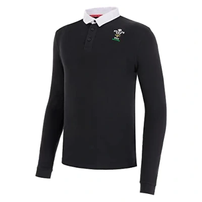 Macron Welsh Rugby Classic Pique Polo, Long Sleeve, Black, Junior