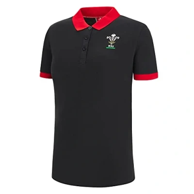 Macron Women's Wru Merch Ca Lf Female Blk/Red Polo Shirt, Black, 24 UK